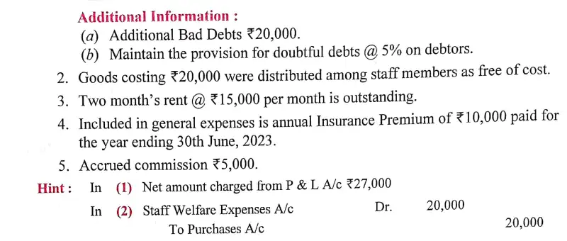 Here is the Solution of Q 10 Final Accounts-With Adjustments DK Goel Class 11 Accountancy 2023-24 for the ISC Board.