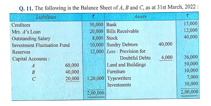 Solution of Question Number 11 Dissolution of Partnership Firm DK Goel ISC for 2024 Examinations