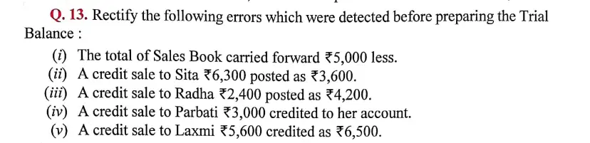 Here is the Solution of Q 13 Errors and their Rectification DK Goel Class 11 Accountancy 2023-24 for the ISC Board.