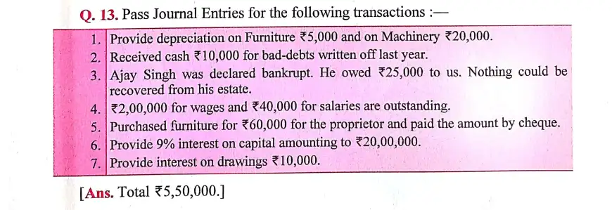 Solution of Question Number 13 Books of Original Entry-Journal DK Goel ISC for 2024 Examinations