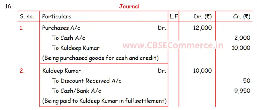 Here is the Solution of Q 16 Books of Original Entry-Journal DK Goel Class 11 Accountancy 2023-24 for the ISC Board.