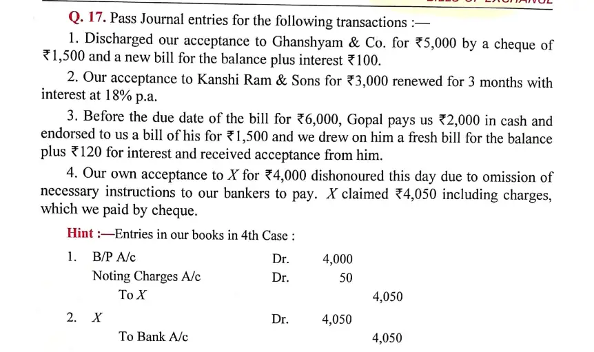Here is the Solution of Q 17 Bills of Exchange DK Goel Class 11 Accountancy 2023-24 for the ISC Board.