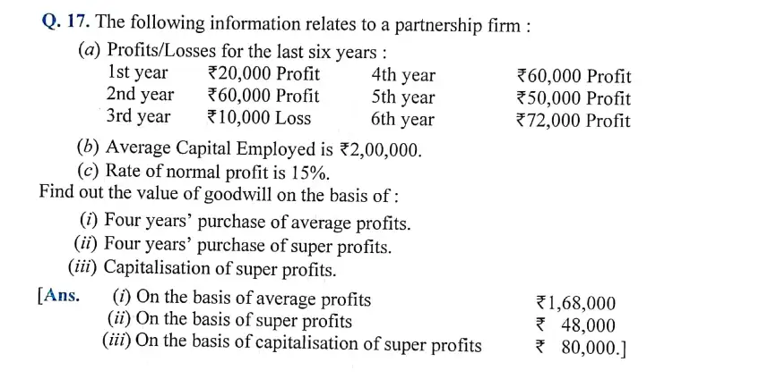 Here is the Solution of Q 17 Goodwill DK Goel Class 12 Accountancy 2023-24 for the ISC Board.