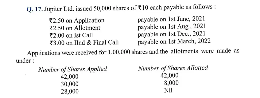 Solution of Question Number 17 Company Accounts-Issue of Shares DK Goel ISC for 2024 Examinations