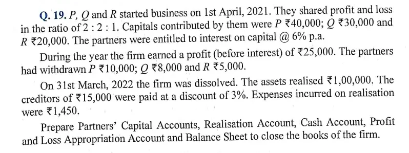 Solution of Question Number 19 Dissolution of Partnership Firm DK Goel ISC for 2024 Examinations