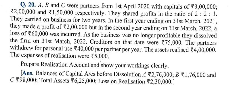 Here is the Solution of Q 20 Dissolution of Partnership Firm DK Goel Class 12 Accountancy 2023-24 for the ISC Board.