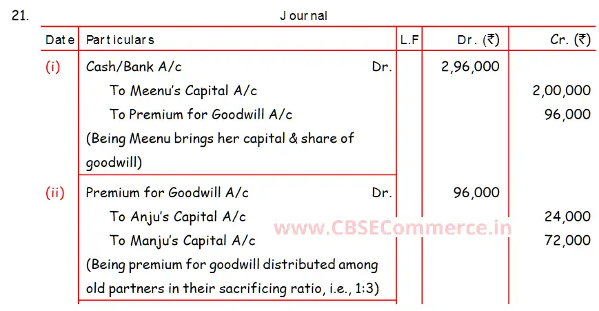 Solution of Question Number 21 Admission of a Partner DK Goel ISC for 2024 Examinations