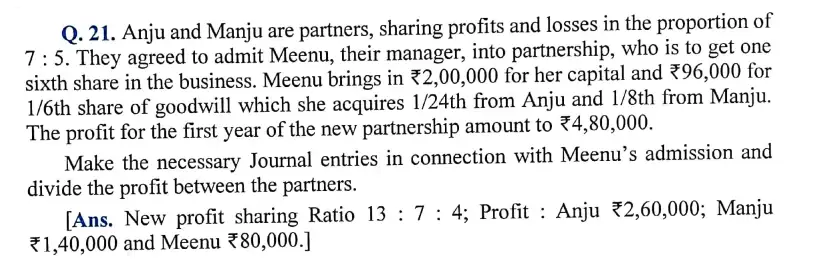 Here is the Solution of Q 21 Admission of a Partner DK Goel Class 12 Accountancy 2023-24 for the ISC Board.