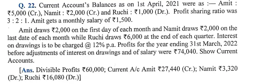 Solution of Question Number 22 Accounting for Partnership Firms-Fundamentals DK Goel ISC for 2024 Examinations
