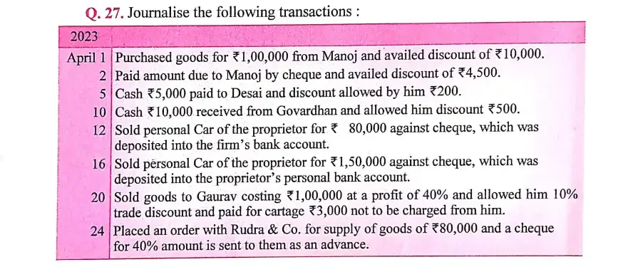 Here is the Solution of Q 27 Books of Original Entry-Journal DK Goel Class 11 Accountancy 2023-24 for the ISC Board.