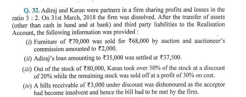 Solution of Question Number 32 Dissolution of Partnership Firm DK Goel ISC for 2024 Examinations