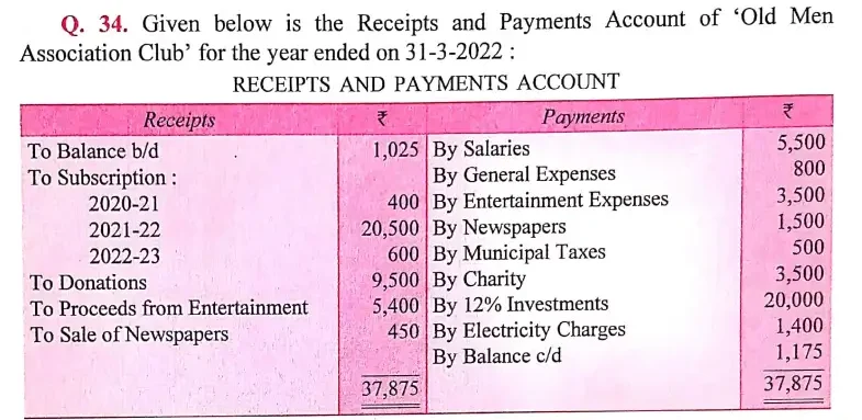 Solution of Question Number 34 Accounts of Not-for-Profit Organisations-NPO DK Goel ISC for 2024 Examinations
