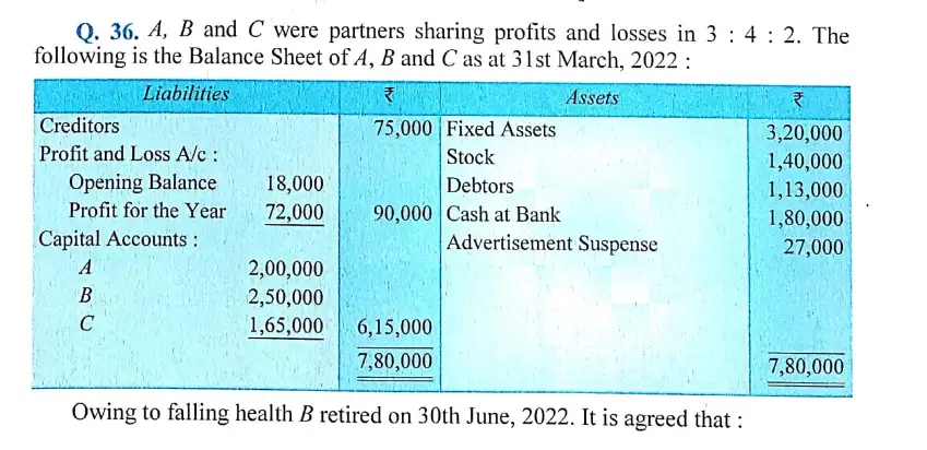 Here is the Solution of Q 36 Retirement or Death of Partner DK Goel Class 12 Accountancy 2023-24 for the ISC Board.