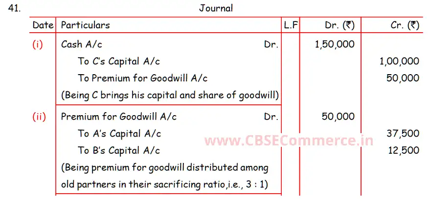 Solution of Question Number 41 Admission of a Partner DK Goel ISC for 2024 Examinations