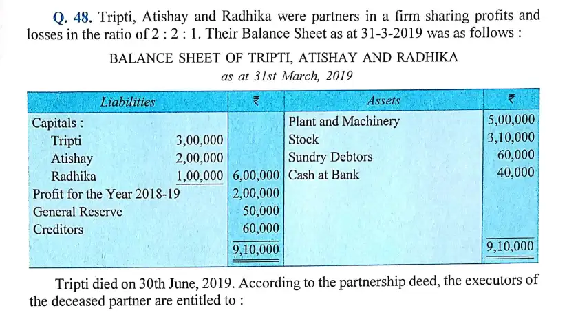 Here is the Solution of Q 48 Retirement or Death of Partner DK Goel Class 12 Accountancy 2023-24 for the ISC Board.