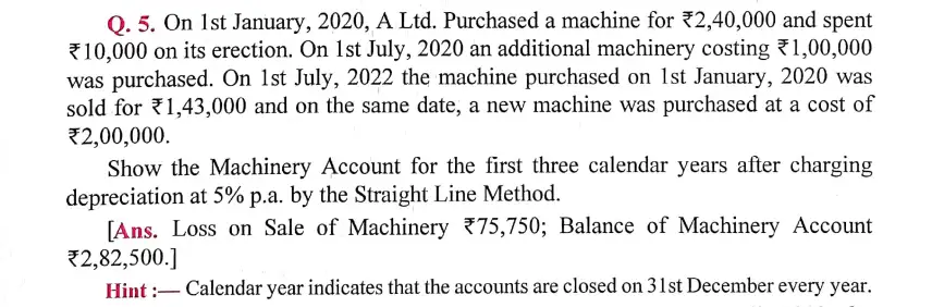 Here is the Solution of Q 5 Depreciation DK Goel Class 11 Accountancy 2023-24 for the ISC Board.