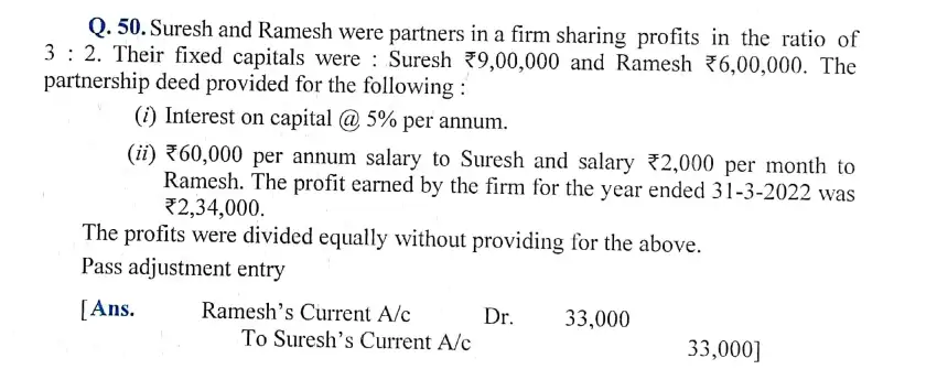 Solution of Question Number 50 Accounting for Partnership Firms-Fundamentals DK Goel ISC for 2024 Examinations