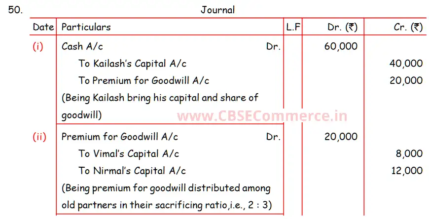 Solution of Question Number 50 Admission of a Partner DK Goel ISC for 2024 Examinations