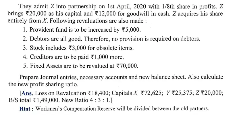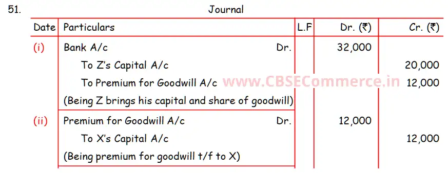Solution of Question Number 51 Admission of a Partner DK Goel ISC for 2024 Examinations
