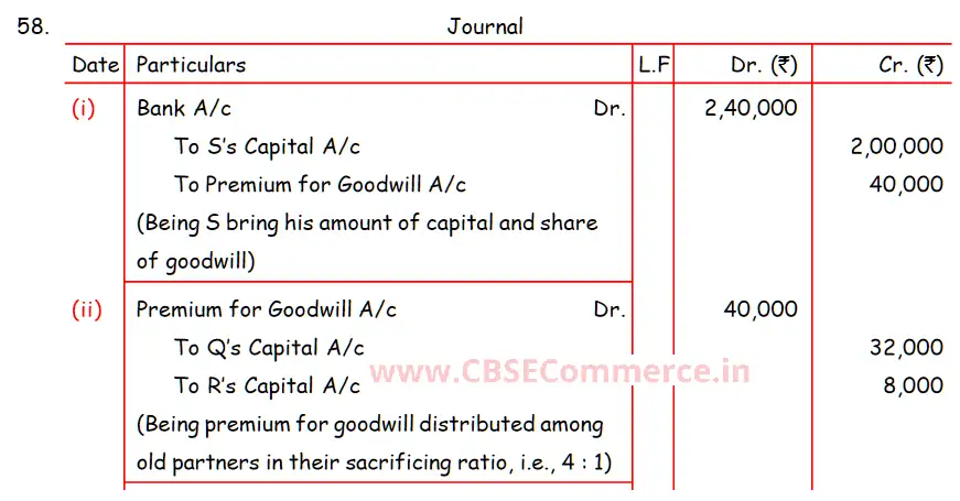 Solution of Question Number 58 Admission of a Partner DK Goel ISC for 2024 Examinations