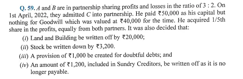 Solution of Question Number 59 Admission of a Partner DK Goel ISC for 2024 Examinations