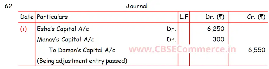 Solution of Question Number 62 Accounting for Partnership Firms-Fundamentals DK Goel ISC for 2024 Examinations