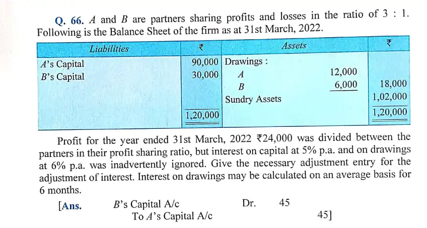 Solution of Question Number 66 Accounting for Partnership Firms-Fundamentals DK Goel ISC for 2024 Examinations