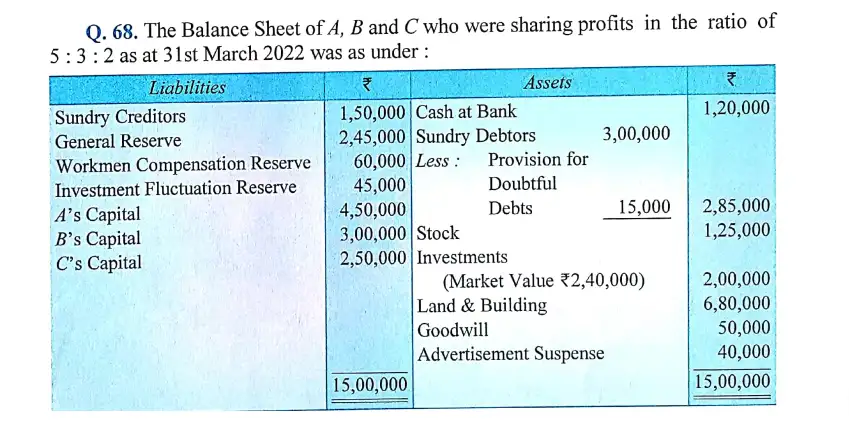 Here is the Solution of Q 68 Retirement or Death of Partner DK Goel Class 12 Accountancy 2023-24 for the ISC Board.