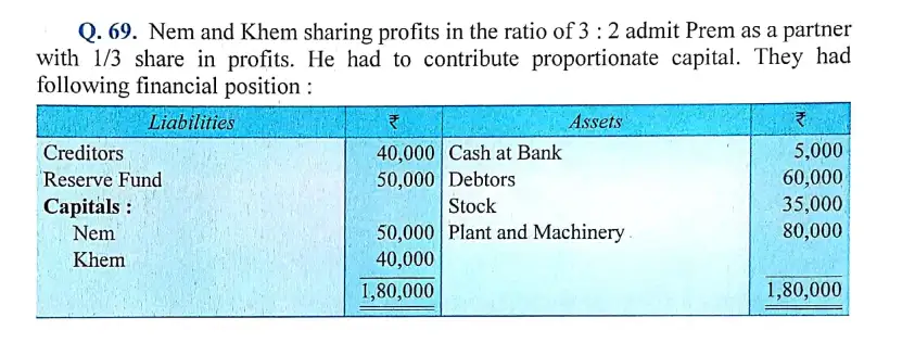 Here is the Solution of Q 69 Admission of a Partner DK Goel Class 12 Accountancy 2023-24 for the ISC Board.