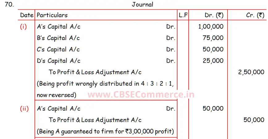 Solution of Question Number 70 Accounting for Partnership Firms-Fundamentals DK Goel ISC for 2024 Examinations