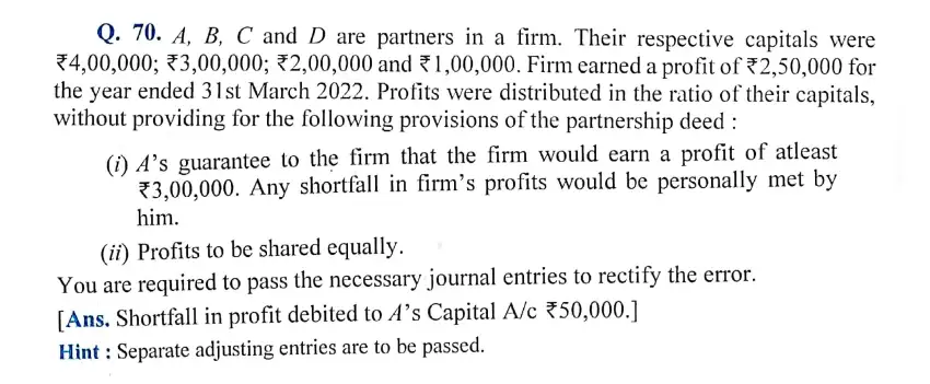 DK Goel Solutions ISC Q 70 Chapter 1 Accounting for Partnership Firms-Fundamentals Class 12 ISC [2023-24]