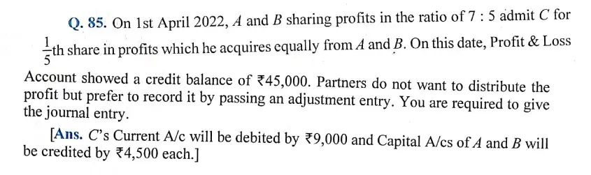 Solution of Question Number 85 Admission of a Partner DK Goel ISC for 2024 Examinations