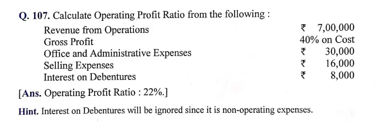 Solution of Question Number 107 Accounting Ratios DK Goel for 2024 Examinations
