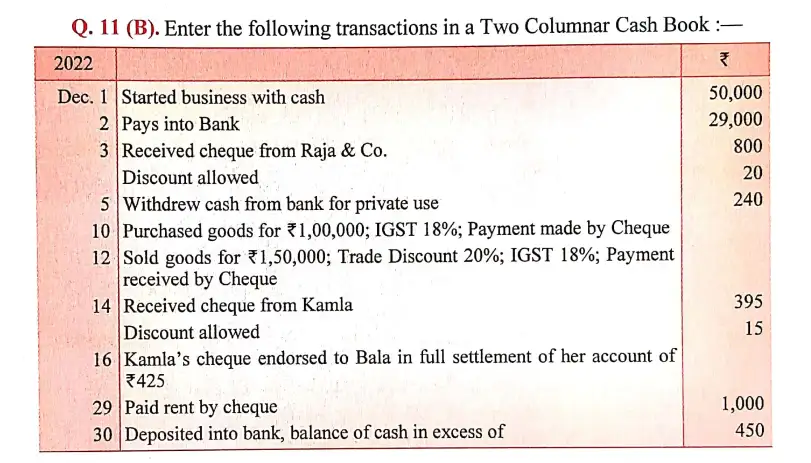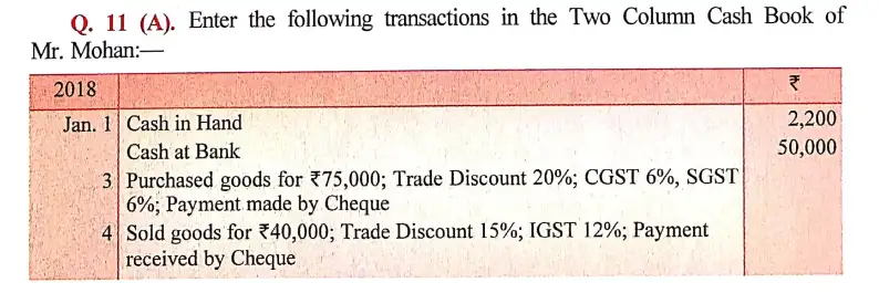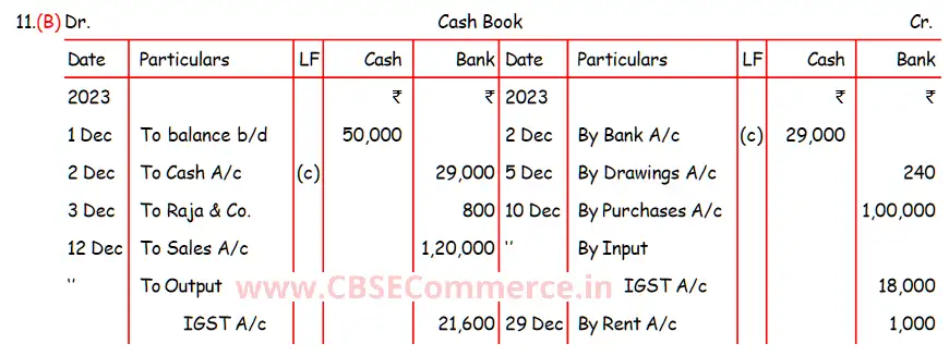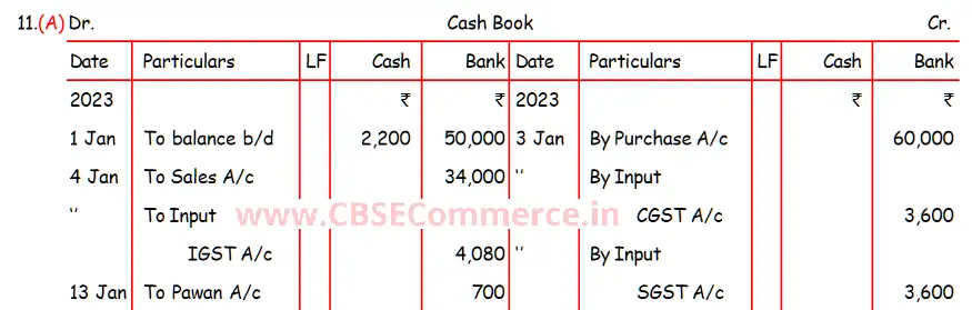 Solution of Question Number 11 Books of Original Entry-Cash Book DK Goel for 2024 Examinations