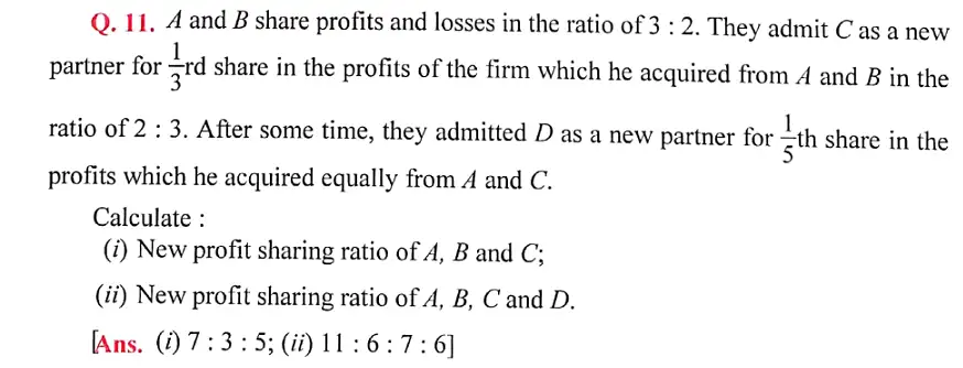 Solution of Question Number 11 Admission of a Partner DK Goel for 2024 Examinations