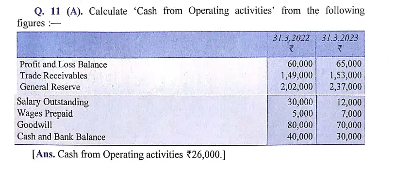 Here is the Solution of Q 11 Cash Flow Statement DK Goel Class 12 Accountancy 2023-24 for the CBSE Board.