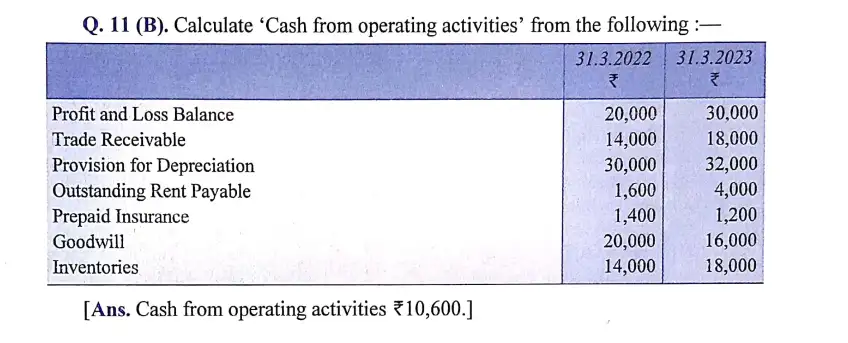 Solution of Question Number 11 Cash Flow Statement DK Goel for 2024 Examinations