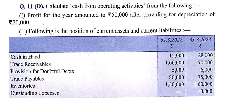 DK Goel Solutions Q 11 Chapter 4 Cash Flow Statement Class 12 CBSE [2023-24]