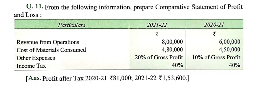 Solution of Question Number 11 Comparative Statements DK Goel for 2024 Examinations