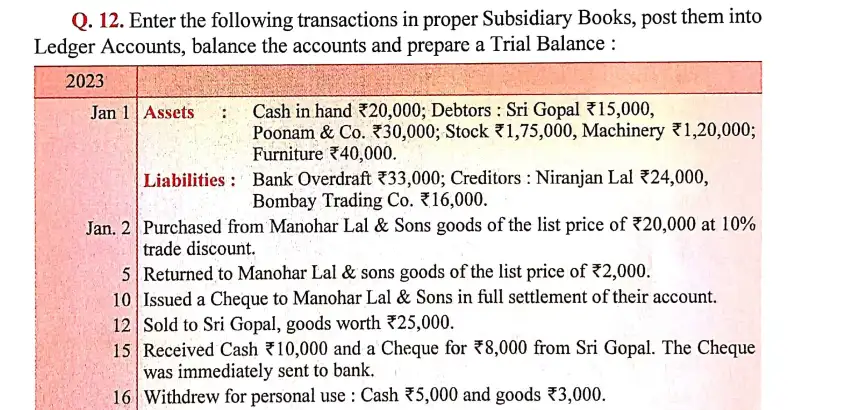 Solution of Question Number 12 Ledger DK Goel for 2024 Examinations