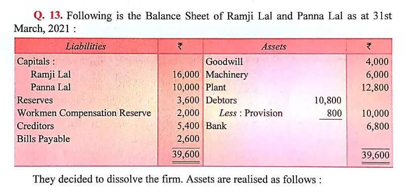 Here is the Solution of Q 13 Dissolution DK Goel Class 12 Accountancy 2023-24 for the CBSE Board.