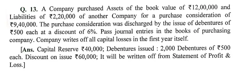 Solution of Question Number 13 Accounting for Companies – Issue of Debentures DK Goel for 2024 Examinations