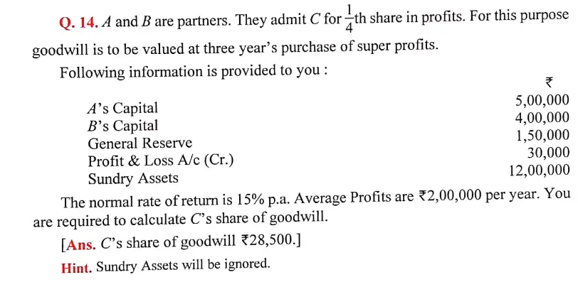 Solution of Question Number 14 Change in Profit Sharing Ratio DK Goel for 2024 Examinations
