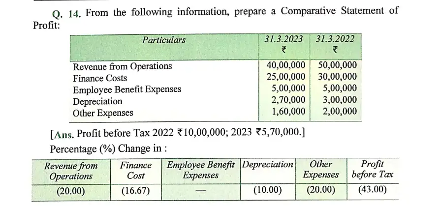 Solution of Question Number 14 Comparative Statements DK Goel for 2024 Examinations