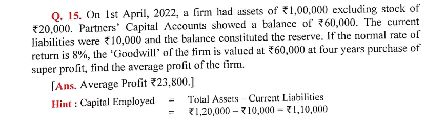Solution of Question Number 15 Change in Profit Sharing Ratio DK Goel for 2024 Examinations