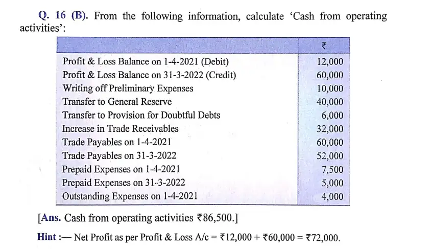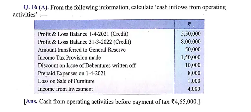 Here is the Solution of Q 16 Cash Flow Statement DK Goel Class 12 Accountancy 2023-24 for the CBSE Board.