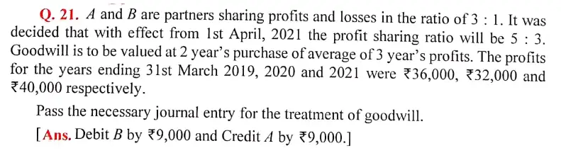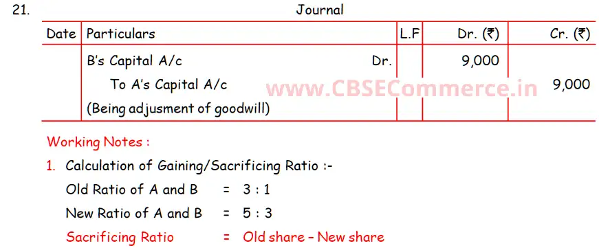 Solution of Question Number 21 Change in Profit Sharing Ratio DK Goel for 2024 Examinations
