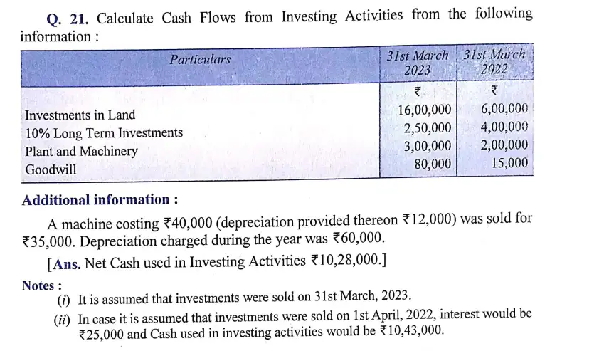 Solution of Question Number 21 Cash Flow Statement DK Goel for 2024 Examinations