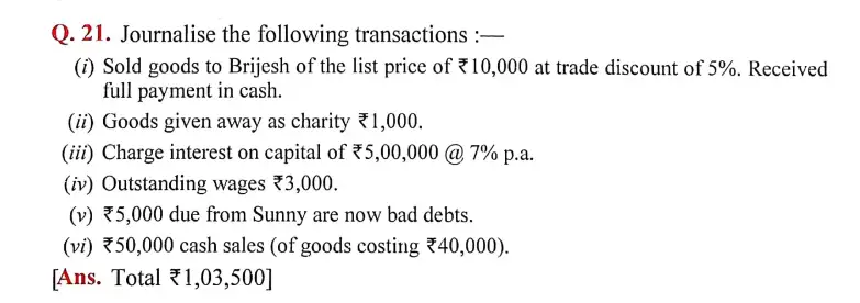 Solution of Question Number 21 Books of Original Entry-Journal DK Goel for 2024 Examinations