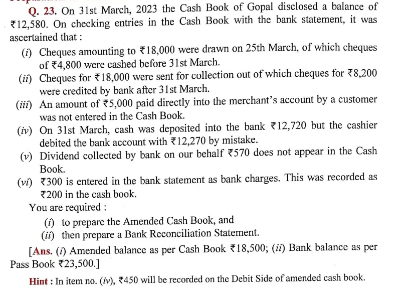 Here is the Solution of Q 23 Bank Reconciliation Statement DK Goel Class 11 Accountancy 2023-24 for the CBSE Board.